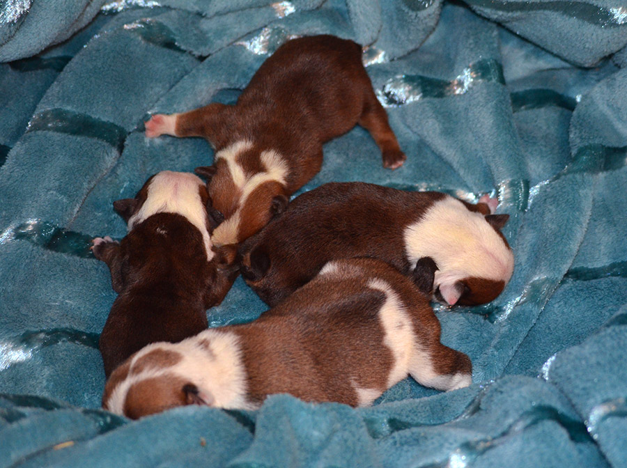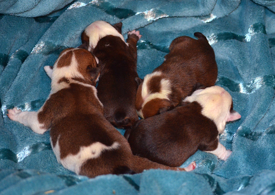 Родилось 5 щенков: 1 мальчик и 4 девочки.
