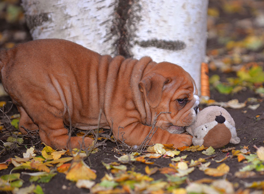 Щенки английского бульдогаПитомник предлагает следующих щенков английского бульдога:Мальчик 1.ЗАРЕЗЕРВИРОВАН Мальчик от Гамлета (Лав Лап Топ Гамлета, сына Сола) и Упсы (Лав Лап Топ Упсы, дочки Гая).Дата рождения щенка: Родители щенка: