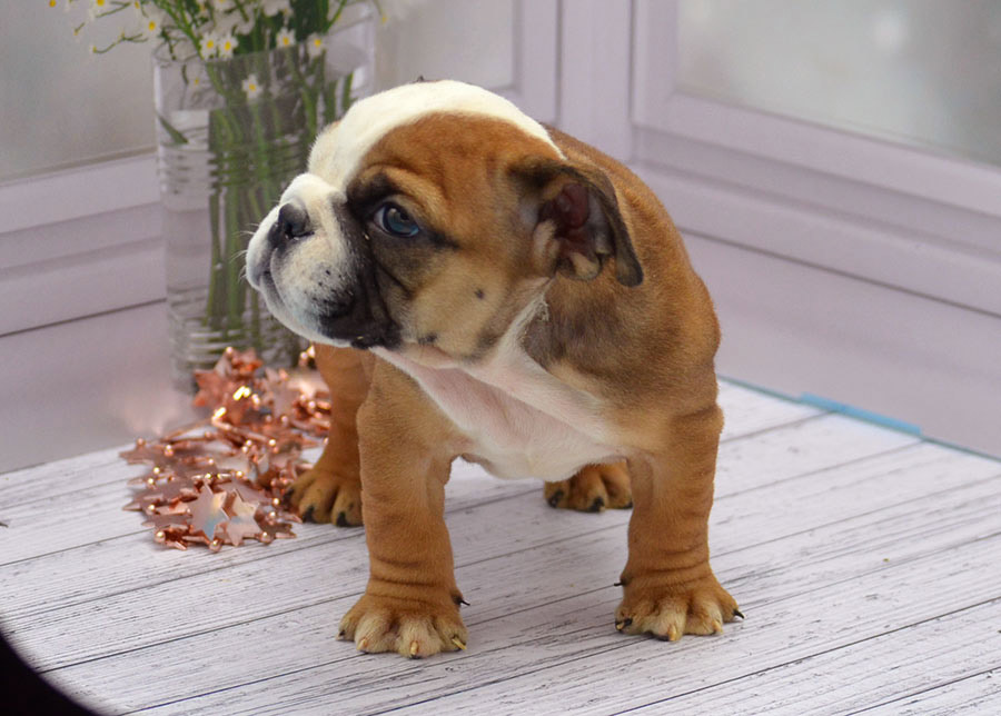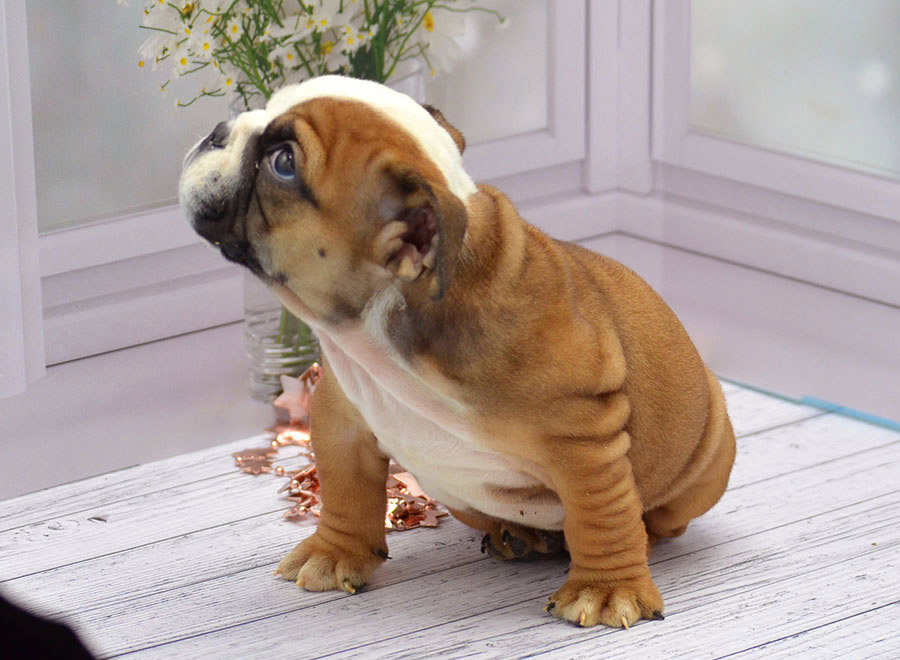 Щенки английского бульдогаПитомник предлагает следующих щенков английского бульдога:Предыдущий щенок Следующий щенок Девочка 3.ПРОДАНА. Девочка от Гамлета (Лав Лап Топ Гамлета, сына Сола) и Яси (Лав Лап Топ Обаяси, дочки Шери).Дата рождения щенка: Родители щенка: